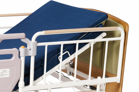 為了減輕坐輪椅的人員或者看護(hù)人員的負(fù)擔(dān)可 以自由升降。只要操作手控器來(lái)控制床的高度可 以實(shí)現(xiàn)25cm~61cm的無(wú)級(jí)升降調(diào)節(jié)。